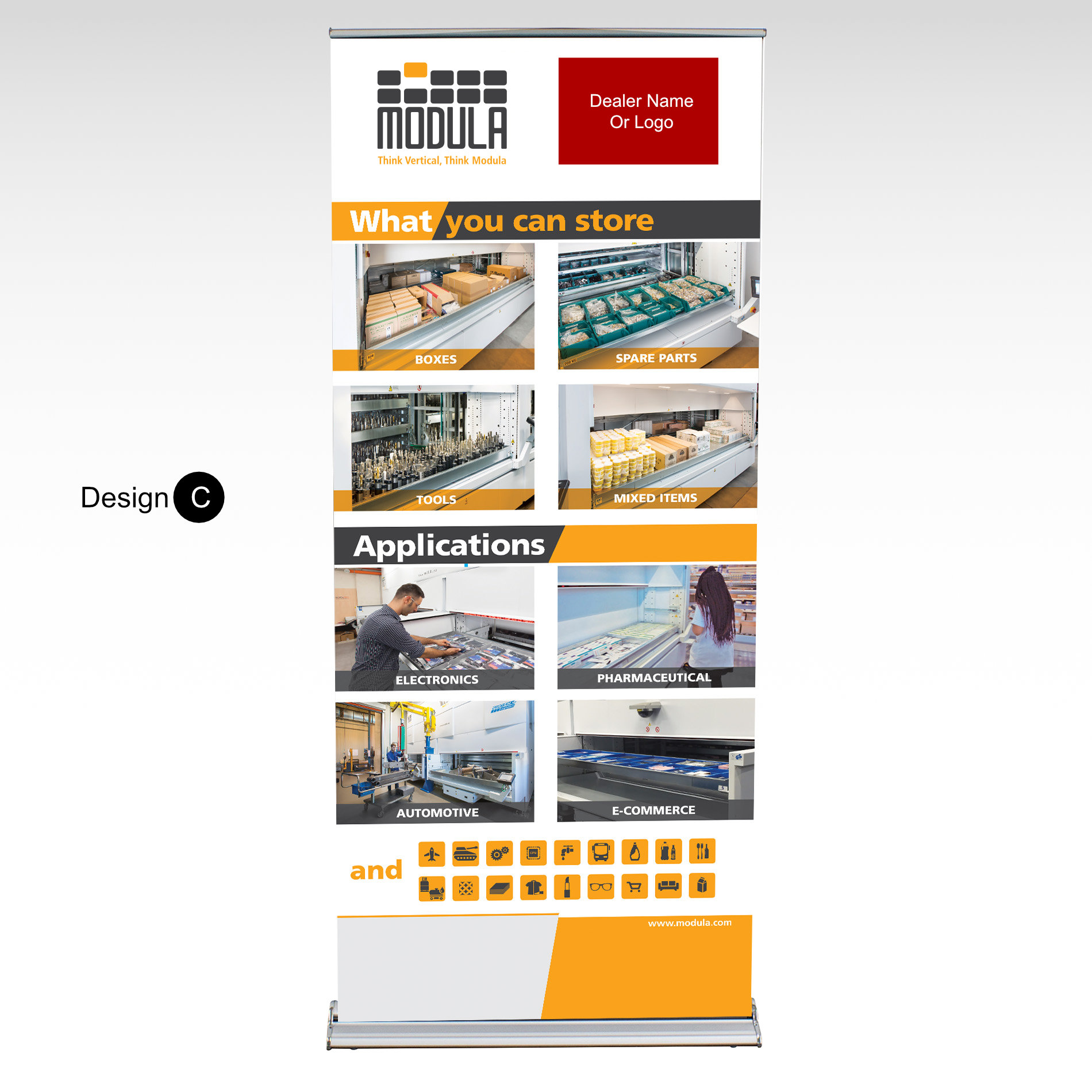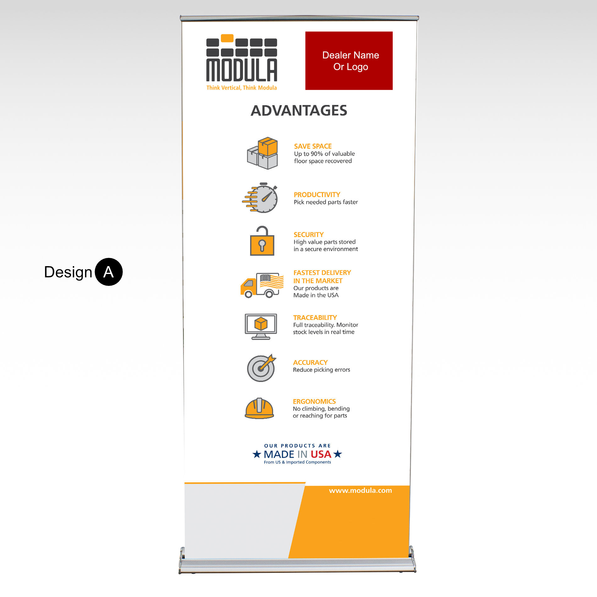 - This retractor’s base has a high-end look, and its hook-and-loop banner system allows banners to be frequently swapped with very little effort.